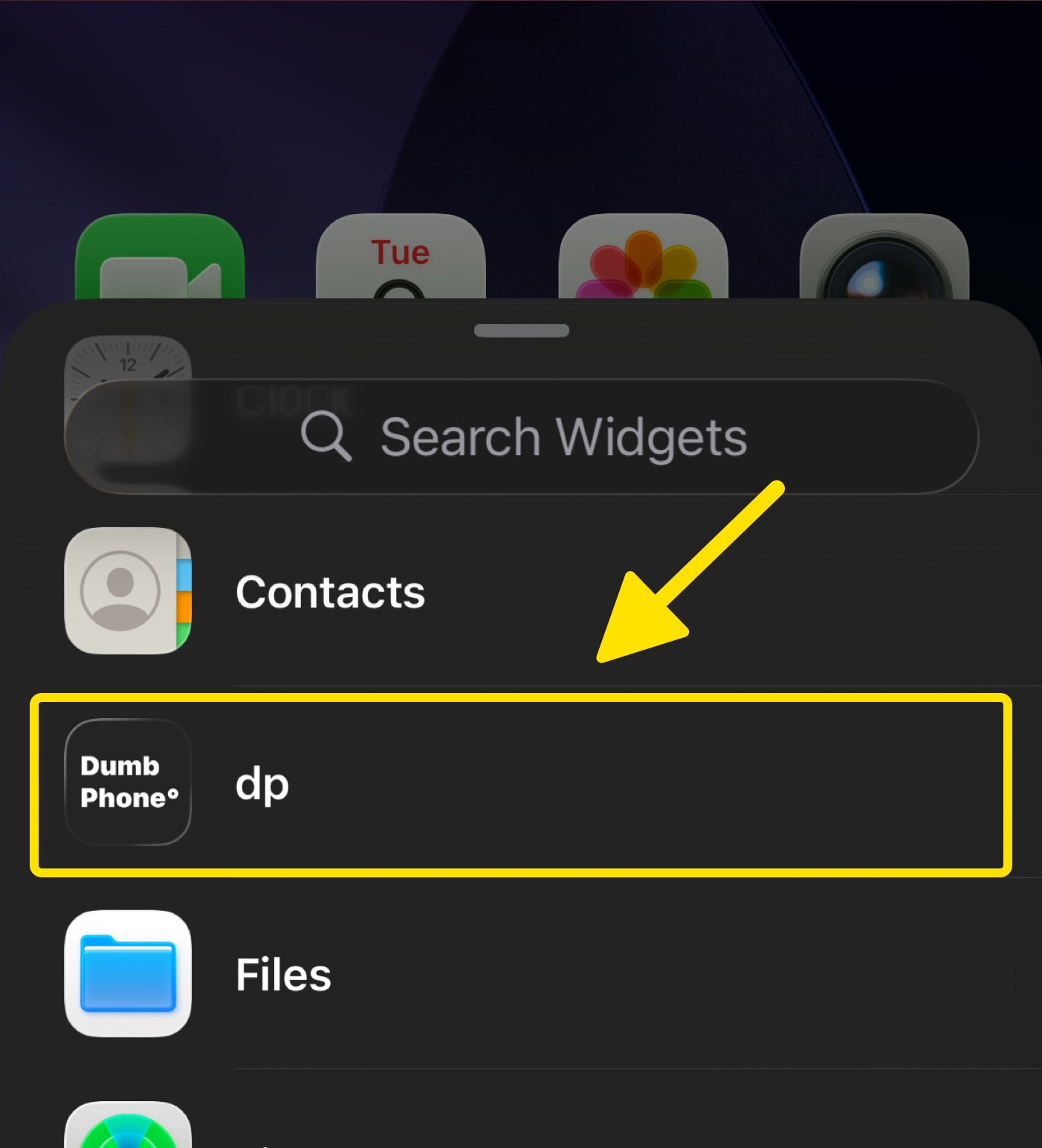 Scroll down and tap Dumb Phone (which will appear as "dp")