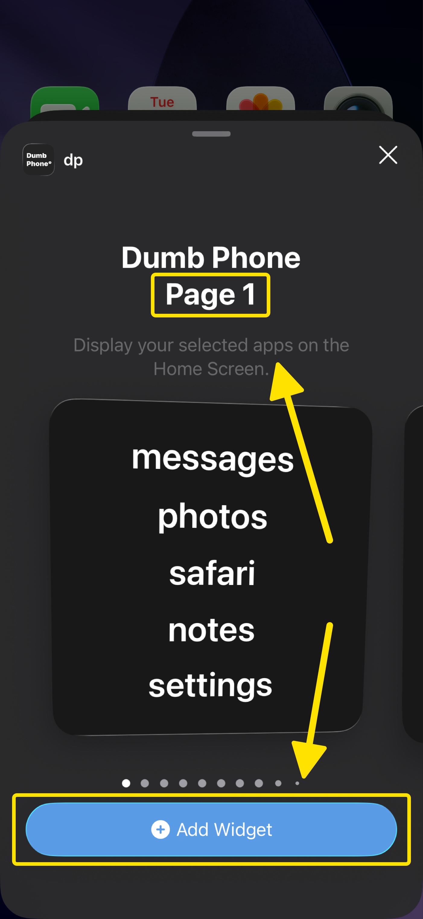 Swipe to the Page 1 widget, then tap Add Widget