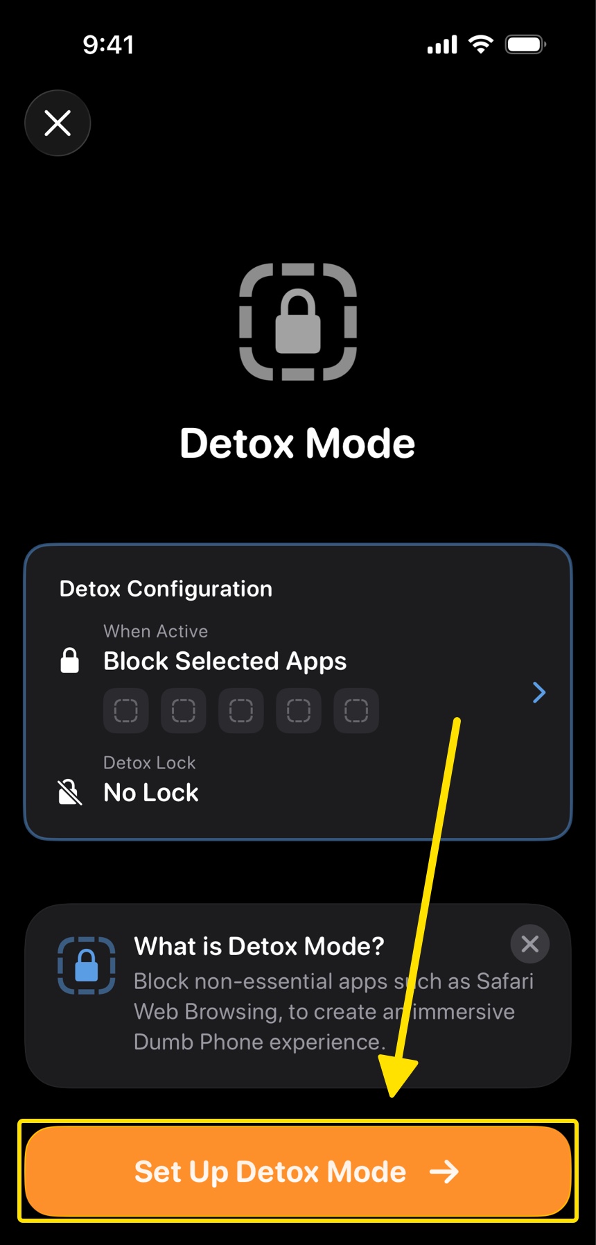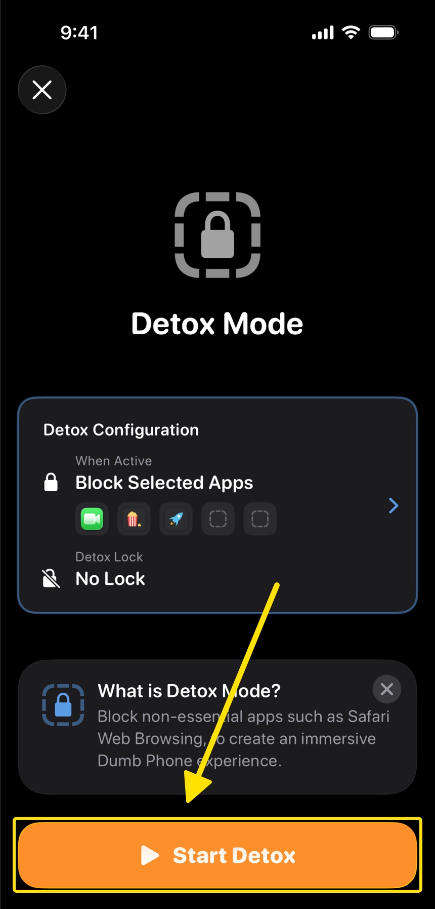 Turn on Detox Mode by tapping "Start Detox" to initiate app blocking