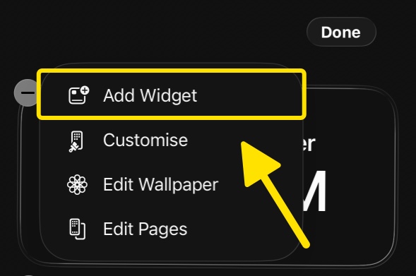 Long-press on the Home Screen → Edit → Add Widget