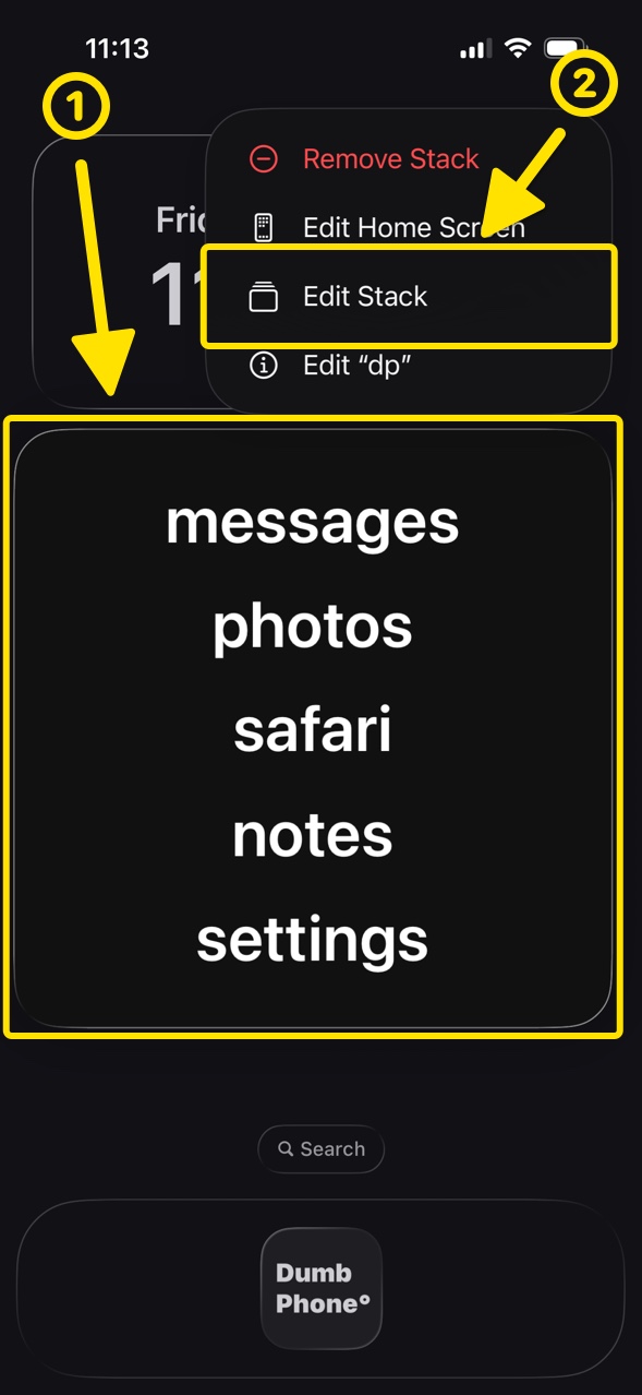 I'm having trouble stacking Dumb Phone widgets