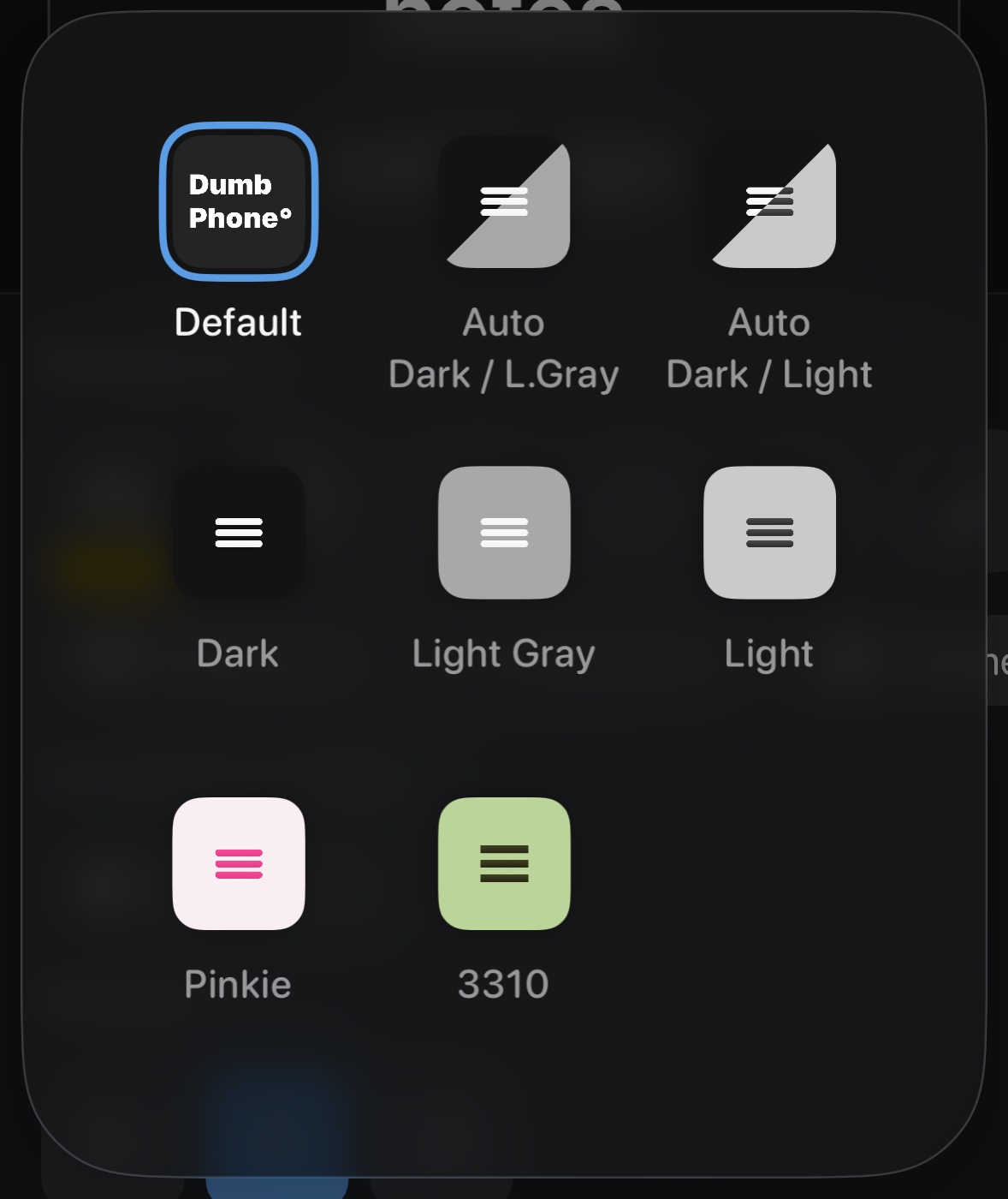 Dumb Phone supports various alternate app icons to match particular styles provided with Dumb Phone, which can be adjusted in-app via the Launcher Style or Settings screens.