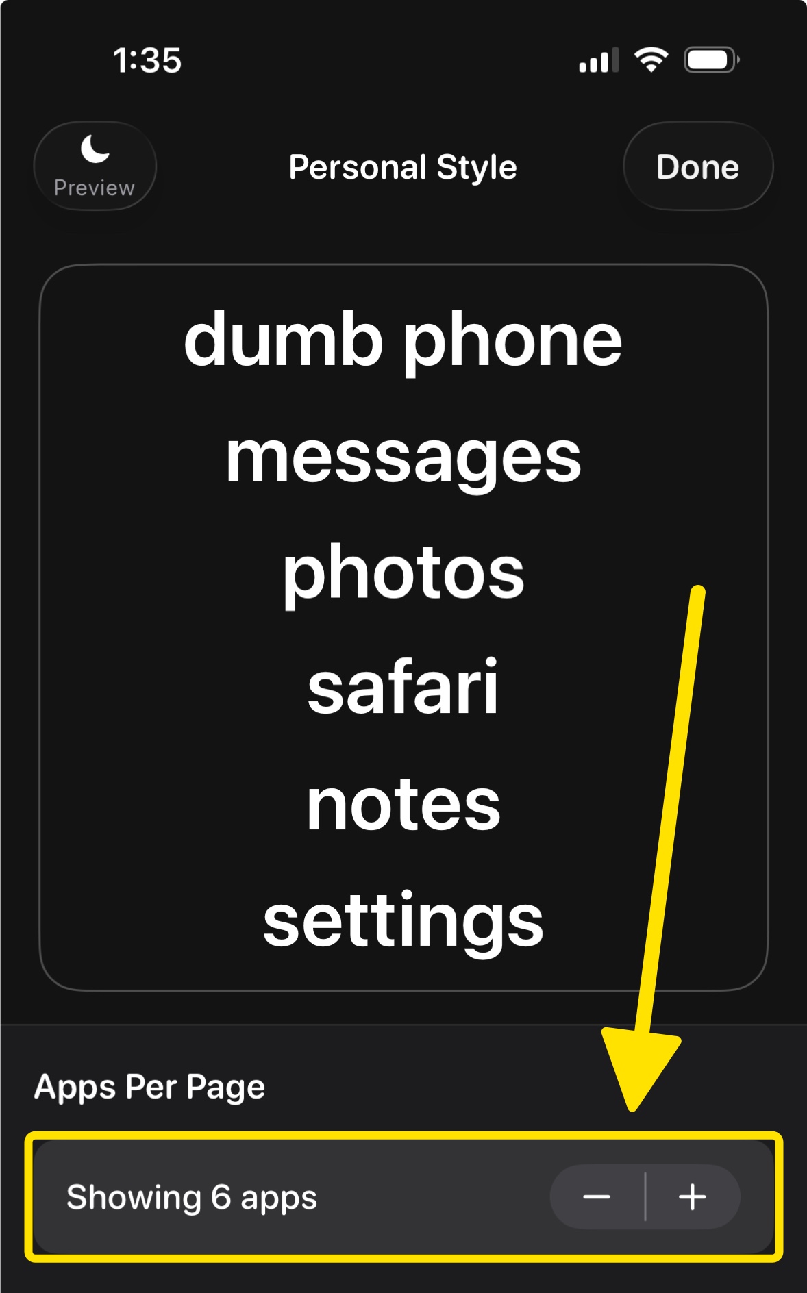 On the Launcher Style screen → under the Apps Per Page section, reduce the total amount of apps displayed.