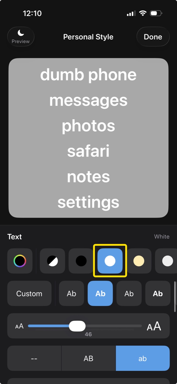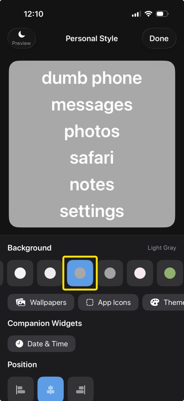 If the Dumb Phone widgets display a black background when Light Mode is turned on, and/or the Home Screen Customize is set to Default / Light, it's likely the App Launcher's background has been explicitly set to Black.